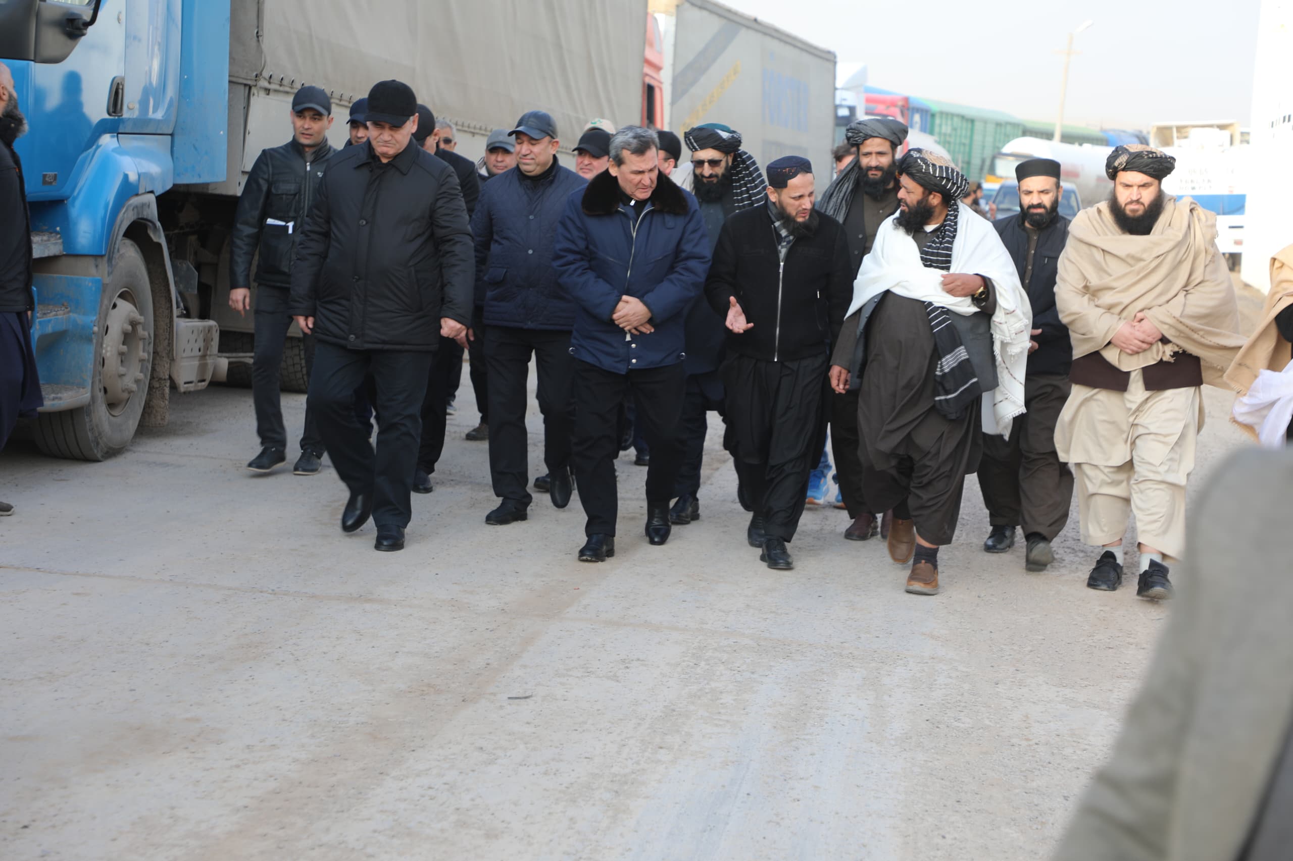 KABUL: Minister of Mines and Petroleum, Mullah Hidayatullah Badri, along with Herat Governor Shaikh Noor Ahmad Islamjar, during an official visit to the Turghundi port, was warmly welcomed by Rashid Meredov, the Minister of Foreign Affairs of Turkmenistan, and other high-ranking Turkmen officials at the port.