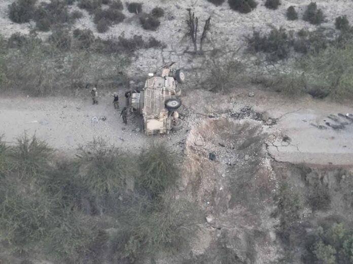 دغو امنيتي سرچينو زياته کړې، چاودنه د سړک په غاړه د اېښودلي بم له امله شوې، چې پکې د امنيتي ځواکونو دوه وسايط هم په نښه شوي دي.