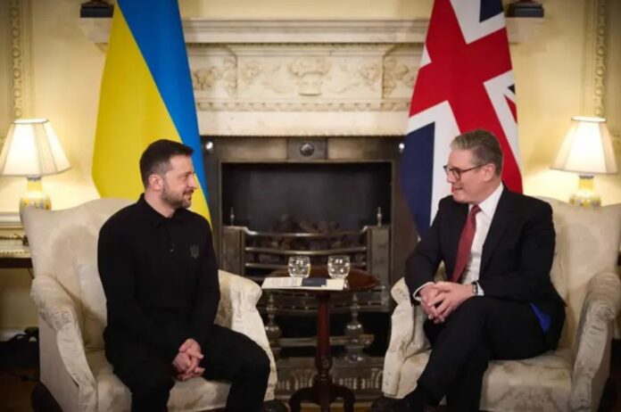 د امريکا په سپينه ماڼۍ کې ډونالډ ټرمپ او زيلينسکي له ناندريو وروسته په بريتانيا کې د لومړي وزير کېير سټارمر له لوري د زيلينسکي تود هرکلی شوی دی.