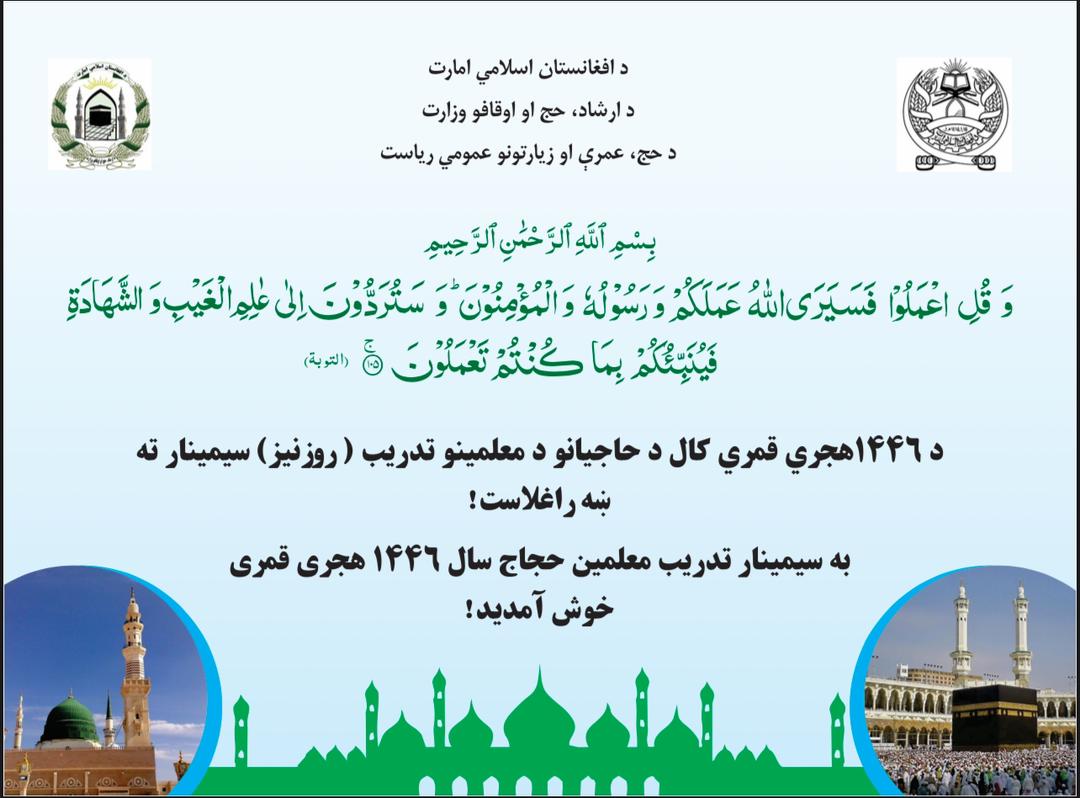 د ياد وزارت د خبرپاڼې له مخې، په دې سيمينار کې معلمينو ته د حج مناسکو، د حاجيانو د سمې رهبرۍ، اداري همغږۍ او د حج د بېلابېلو پړاوونو اړوند مهم او تخصصي درسونه وړاندې کېږي.