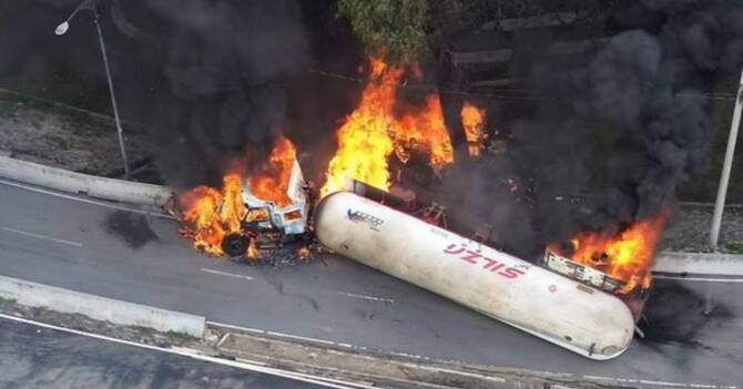 یاده پېښه د چهارشنبې په ورځ هغه مهال رامنځته شوې چې د شاوخوا ۵۰ زره لیتره ګازو بار یوه ټانکر لارۍ د دیوال سره له ټکر وروسته وچاودېده. د ټکر او چاودنې له امله ۳۰ نور موټرونه هم سوځېدلي.
