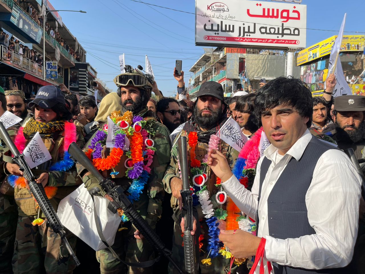 د خوست مسوولینو امید راډیو ته ویلي چې نن ماسپښين دوې نيمې بجې د خوست ولسونو لخوا د دغه ولايت په عمومي چوک څلورلارې کې افغان ځواکونه د یو لړ ځانګړو مراسمو په ترڅ کې ستایل شوي دي.