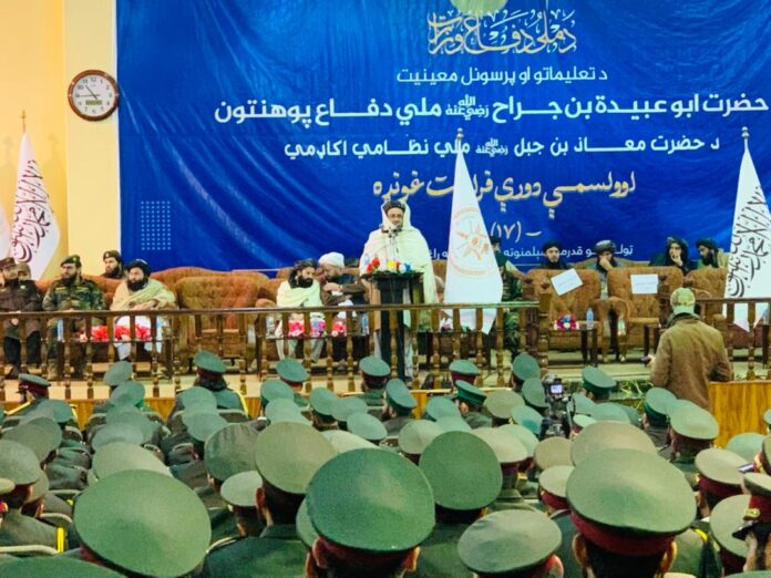 د ازموينې ملي ادارې رييس شيخ عبدالباقي حقاني د حضرت ابوعبیده بن جراح ملي دفاع پوهنتون د حضرت معاذ بن جبل رض ملي نظامي اکاډمۍ ۱۷مې دورې فراغت غونډې په مراسمو کې د قانون پر تطبيق ټينګار کړی دی.