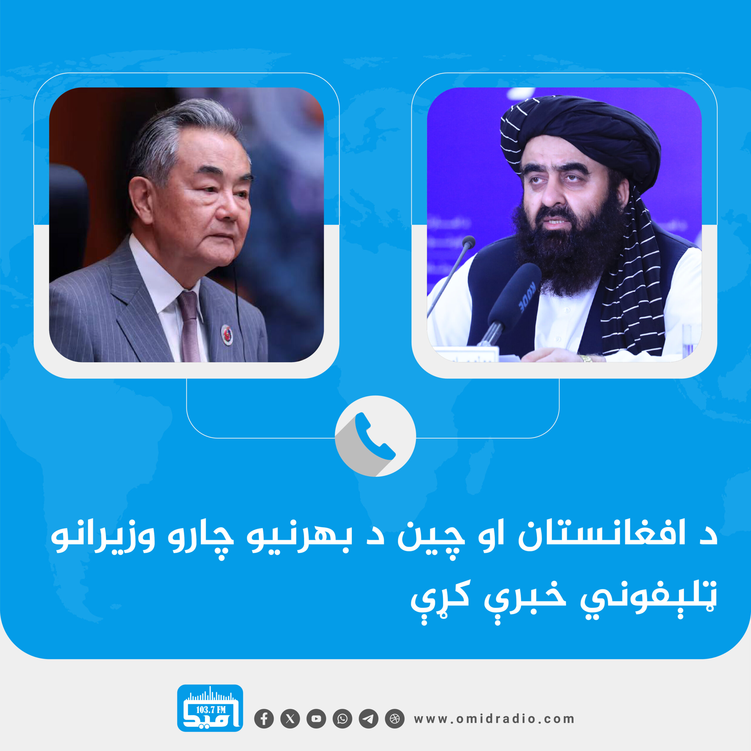 د بهرنیو چارو وزیر مولوي امیرخان متقي او د چین د بهرنیو چارو وزیر وانګ‌يي ترمنځ ټیلیفوني خبرې شوې دي.