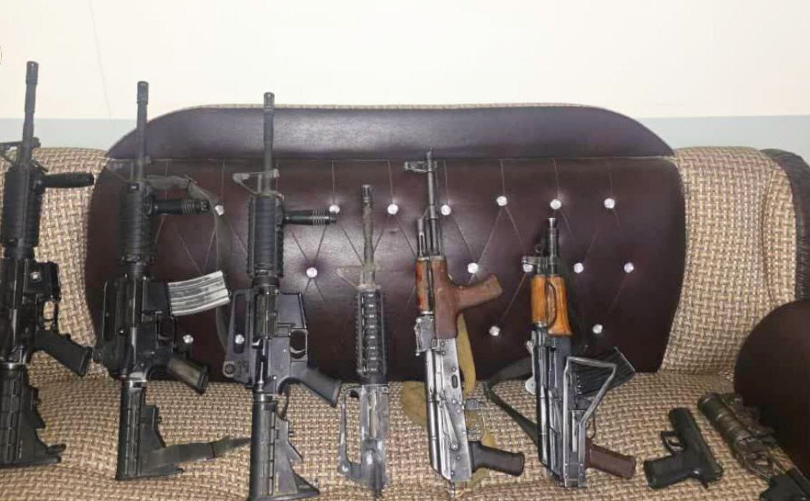 The seized items include M4s, Kalashnikovs, grenades, 2,868 various bullets, five telescopes, seven M4 scopes, one mine detector, 34 types of magazines, and 731 assorted weapon parts.