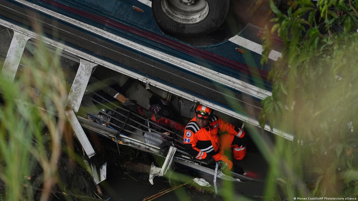 The accident occurred when a bus veered off the “Guatemala to Totonicapan” road in a mountainous area and plunged into a 100-meter deep valley.