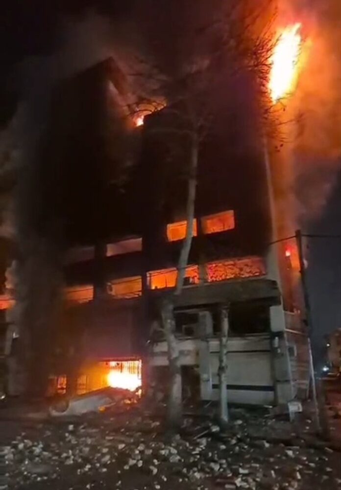 Images shared on social media show extensive fire damage in the upper floors of the building.