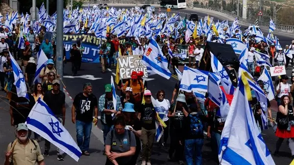 The protests come as authorities in Israel have imposed tight restrictions on public demonstrations during the conflict. The Home Front Command reportedly authorized a gathering of up to 150 people at Habima Square in Tel Aviv.