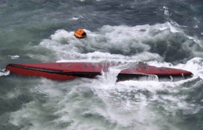 آسوشیتدپرس گفته که کشتی کوریای جنوبی، در آبهای جنوبغربی جاپان، واژگون شده است.