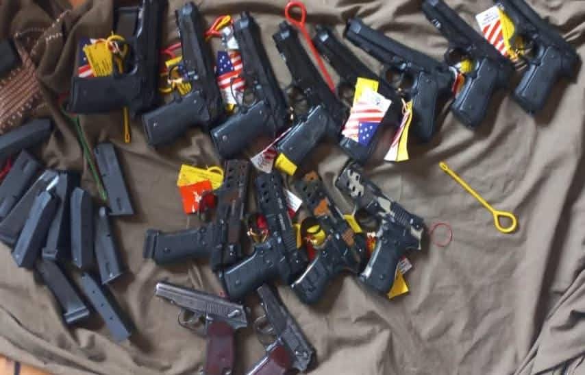 این تعداد اسلحه در یک عراده موترسایکل بهطور ماهرانه جاسازی شده بود.