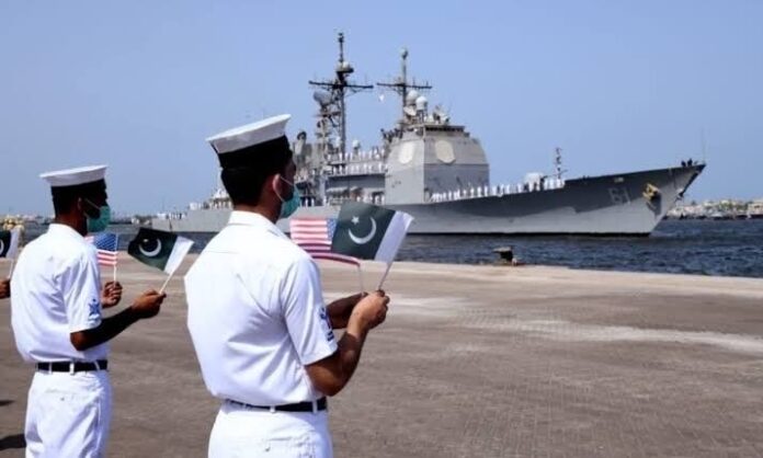 رسانههای دولتی پاکستان گزارش دادهاند که یک کشتی حامل نیروی بحری امریکا در یک ماموریت دو روزه در آبهای پاکستان مستقر و دریاداران امریکایی با نیروی دریایی این کشور دیدار کردهاند.