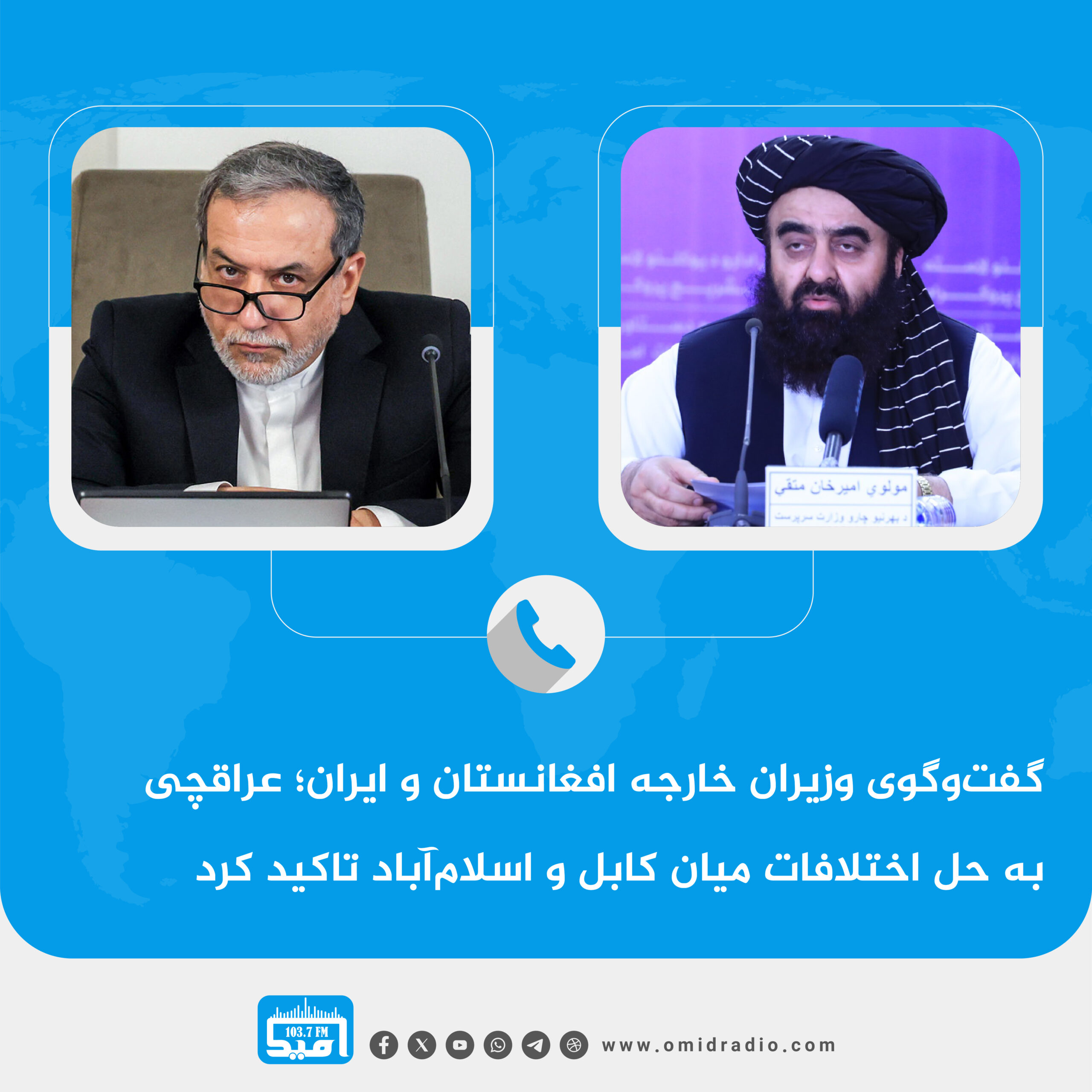 مولوی امیرخان متقی، وزیر امور خارجه ا.ا. افغانستان با داکتر سید عباس عراقچی، همتای ایرانیاش تلفونی گفتوگو کرده است.