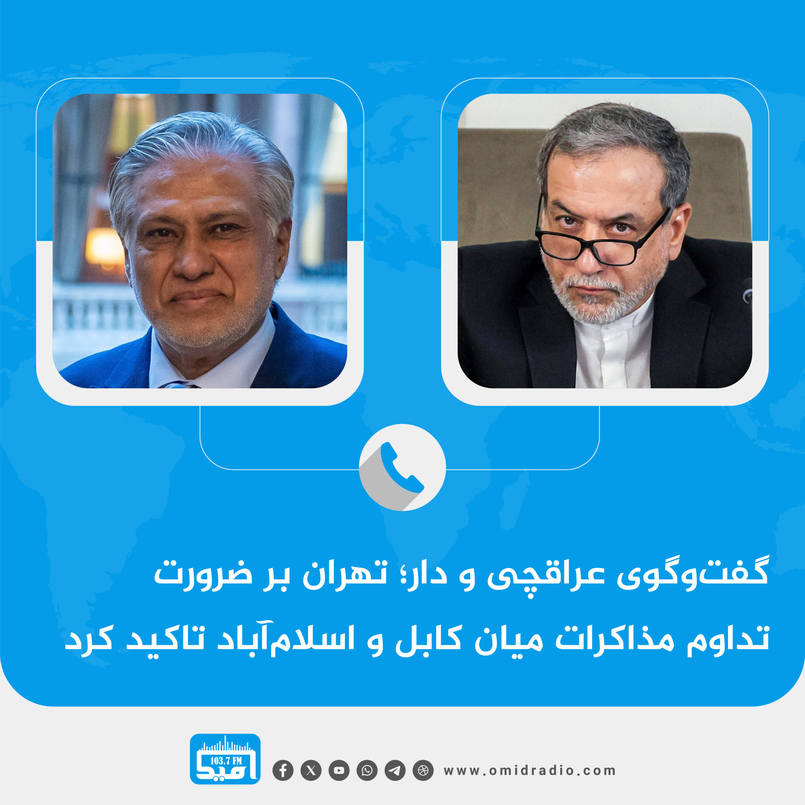 داکتر سید عباس عراقچی، وزیر امور خارجه ایران در یک تماس تلفونی با محمد اسحق دار، همتای پاکستانیاش در مورد افغانستان گفتوگو کرده است.