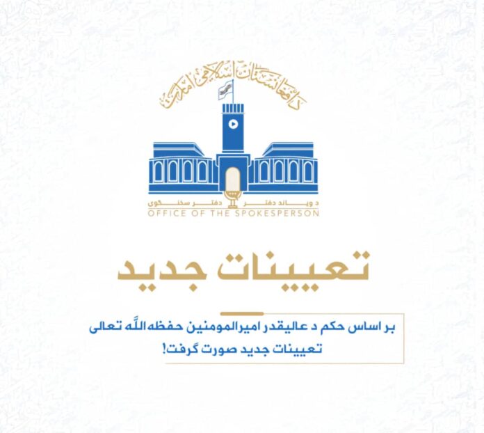 ملا حمدالله فطرت، معاون سخنگوی ا.ا. افغانستان با نشر خبرنامه‌ای از گزینش‌های تازه در رهبری برخی کرسی‌های دولتی خبر داده است.